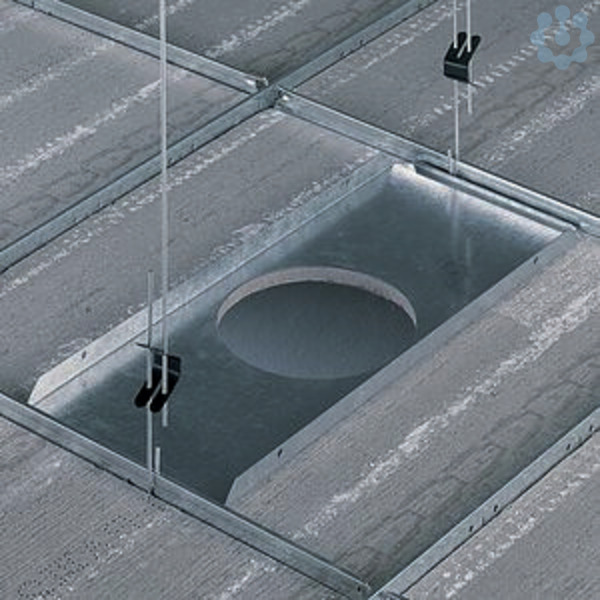 Montageplatte zur Verstärkung von Deckenplatten sowie für den Einbau des Downlight in Decken mit geringer Tragfähigkeit. Für Modulmaß 600. Aus Stahlblech, sendzimirverzinkt.