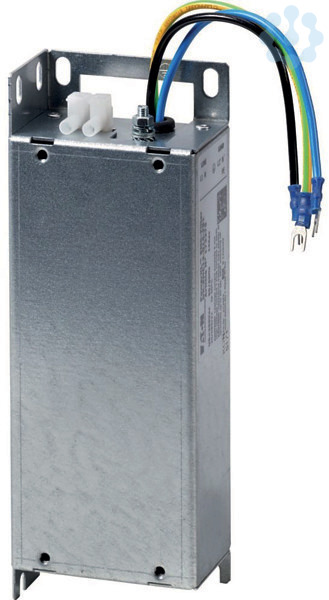 Funkentstörfilter, Beschreibung: einphasig, Netzspannung (50/60Hz): ULN= max. 250 + 10% V, Bemessungsbetriebsstrom: Ie= 25 A, verwendbar für: DE1, DE11, DC1, Schutzart: IP00, IP20 im angeschlossenen Zustand, Anschlussart: Anschlussklemme, PE-Bolzen, konfektionierte Leitungen, Gewicht: m 1,8 kg, Hinweise: Unterbaufilter, Nebenbaufilter, Normen und Bestimmungen: EN 50178, IEC 61800-3, EN 61800-3 inkl. A11