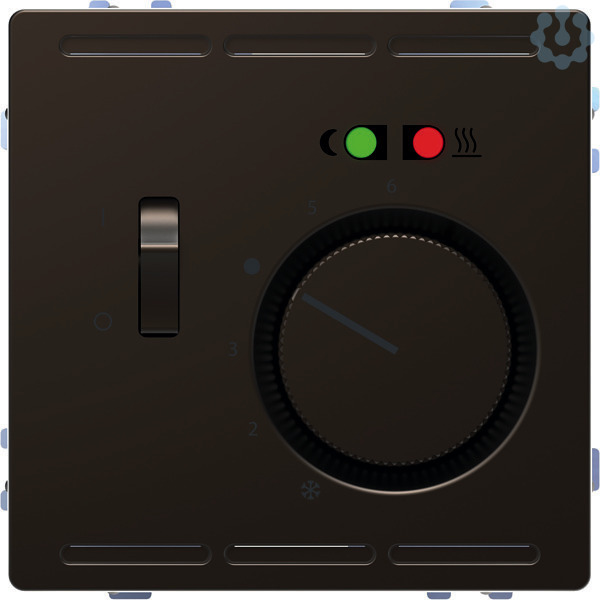 Für System Design. Für elektrische Fußbodenheizung mit NTC Fühler. Bereichsbegrenzung im Einstellknopf integriert. Mit Fernfühler an 4 m Zuleitung, verlängerbar mit 2-adrigem Kabel. Mit Schraubbefestigung. Mit Steckklemmen. Funktionen -Mit Schalter und Kontrollleuchten. 1xSchließerkontakt. Schaltdifferenz 1 K. Temperaturbereich ca. 10-50 GradC. Anschluss für zeitgesteuerte Nachtabsenkung um ca. 5 K. Nennspannung AC 230 V. Nennstrom (Ohmsch) 10 A. Nennstrom (Induktiv) 4 A, cos Phi 0,6. Schaltleistung Heizen 2300 W. Material Metall. Farbe Moccametallic.