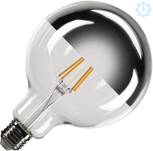 Das chrom 7,5W SLV LED Filament Leuchtmittel mit E27 Sockel und G125 Form ist dimmbar, hat einen einen CRI-Wert von 90, 800 Lumen sowie eine Lebensdauer von 15.000 Stunden. Diese Version hat einen Abstrahlwinkel von 180° und ist warmweiss mit 2.700 Kelvin.