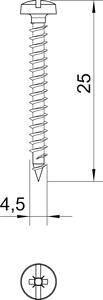Stahl gehärtet, galvanisch verzinkt und hostaflonbeschichtet. Panhead mit kombiniertem Kreuz- und Schraubendreherschlitz (Pozidrive Gr. 2 außer Ø 6 mm Pozidrive Gr. 3).