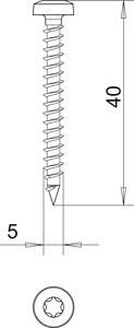 Stahl gehärtet, galvanisch verzinkt und hostaflonbeschichtet. Panhead mit T-Bit (Innensechsrund), die Gr. Ø 3 mm T10, Ø 3,5 mm T15, Ø 4 und 4,5 mm T20, Ø 5 mm T25.