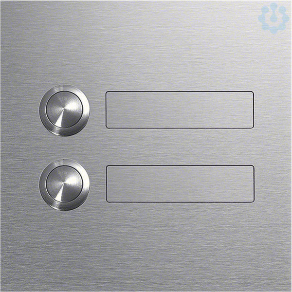 GZM-120 Rund-Taster Modul mit Gravur-Namensschild 2/1 EB Edelstahl matt MODESTA. Klingeltastermodul zum Einbau in Standsäulen oder passend zu entsprechenden AP- bzw. UP-Unterputz-Rahmen für Außentürstationen. Bestehend aus einer 2 mm dicken Modulplatte aus Edelstahl matt gebürstet mit rundem Klingelknopf und flächenbündigem Gravurschild (nicht sichtbar verschraubt).