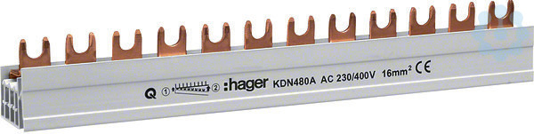 Phasenschiene 4 polig mit Gabelanschluss 16mm² 80A 12 Module.Phasenschiene für passende Modulargeräte.