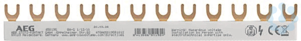 AEG Sammelschienen isoliert. Gabelausführung, 10mm², 1-phasig, 12x1P. Ermöglicht sichere und einfache Querverdrahtung.