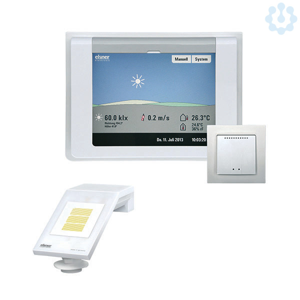 WS1000 Color Gebäude-/WintergartensteuerungenKomplettsystem aus Zentraleinheit, Wetterstation und Innenraumsensor WGTH-UP. Erhältlich in 2 Farbstellungen: Weiß (Zentraleinheit weiß/grau glänzend, WGTH-UP glänzend weiß), Alu (Zentraleinheit weißaluminium/graphit glänzend, WGTH-UP matt aluminium). Wetterstation immer weiß. Zentraleinheit: Erhältlich mit 4, 6, 8 oder 10 Antriebs-Ausgängen (für Markise, Jalousie, Rollladen, Fenster, Schiebetür). Antriebs-Ausgänge 230 V. 4 Multifunktions-Ausgänge (für Heizung, Kühlung, Lüftung, Alarm, Licht, Dimmer, Dachrinnenheizung). 4 Multifunktions-Eingänge (für Bewegungs- oder Rauchmelder, Tür-Kontakt, Binärkontakt, Schaltsignal einer Heizung/Kühlung, einer Kamera oder für Reset). 10 Anschlüsse für Wandtaster. 32 Funk-Kanäle (für Lüftungsgeräte, Elsner RF-Module, Sensoren). SD-Karten-Steckplatz. Farb-Touchdisplay 8,4 Zoll. Unterputz-/Hohlwandmontage. Betriebsspannung: 230 V AC. Innenraumsensor: Für Temperatur und Luftfeuchtigkeit. Wandmontage in Gerätedose. Lieferung mit