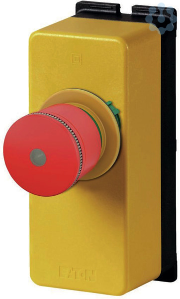Gehäuse, Sortiment: RMQ-Titan, Komplettgerät, Bauform: Pilzform, Durchmesser: 30 mm, beleuchtbar mit LED-Element, Zugentriegelung, Anschlussart: Cage Clamp, Beschreibung: überlistungssicher nach ISO 13850/EN 418, Cage Clamp ist ein eingetragenes Warenzeichen der Wago Kontakttechnik GmbH, Minden, Rückstellung erfolgt durch Ziehen, Befehlsstellen: 1 Anzahl, Farbe Pilzstößel: rot, Farbe Tastensockel: gelb, Farbe Gehäusedeckel: gelb, Farbe RAL-Wert: RAL 3000, Farbe LED: rot/grün, Schutzart: IP65, IP66, IP69, Anbindung an SmartWire-DT: nein, Kontaktbestückung Ö = Öffner: 1 Ö, Kontaktbestückung S = Schließer: 1 S, Kontaktbestückung Hinweis = Sicherheitsfunktion, durch Zwangsöffnung nach IEC/EN 60947-5-1, Weg des Bedienteils und Betätigungskraft nach DIN EN 60947-5-1, K.5.4.1 Zwangsöffnungsweg: mm 5.5, maximaler Weg: mm 5.8, Zwangsöffnung (ZW): ja, Normen und Bestimmungen: IEC/EN 60947, VDE 0660, Einbaulage: Nach Bedarf