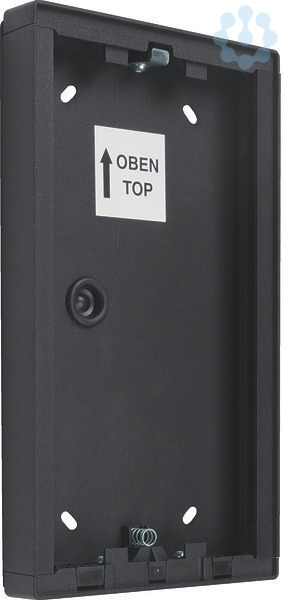 Gehäuse Größe 1 AP für Türstation Edelstahl ONE. Aufputzgehäuse für Türstation aus Aluminium zur Wandmontage. Gehäuse bestehend aus Aluminiumprofil mit Zinkdruckguss-Abschlusselement oben und unten. Profil mit rückseitigen Kabeldurchführung und 4 Langlöchern zur Justierung und Befestigung. Zinkdruckgusselemente mit integriertem Rastfedermechanismus zur schraubenlosen Befestigung einer Türstation. Entriegelung der eingebauten Frontplatten nur mit Spezialwerkzeug möglich (Vandalenschutz). Alle sichtbaren Elemente sind schwarz pulverbeschichtet.