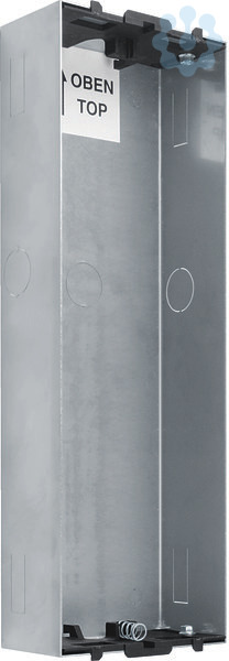 Gehäuse Größe 2 UP für Türstation Edelstahl ONE. Unterputzgehäuse für Türstation aus Edelstahl zur Montage im Mauerwerk. Gehäuse mit austellbaren Mauerankern, rückseitigen Befestigunglöchern und vorgestanzte, ausbrechbare Leitungseinführungen an allen Seiten. Gehäusetiefe 47 mm mit Putzausgleich bis 17 mm, oben und unten stufenlos einstellbar. Feder-Einrastmechanismus zur schraubenlosen Befestigung einer Türstation. Entriegelung der eingebauten Frontplatte nur mit Spezialwerkzeug möglich (Vandalismusschutz).