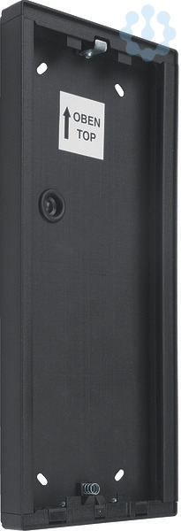 Gehäuse Größe 3 AP für Türstation Edelstahl ONE. Aufputzgehäuse für Türstation aus Aluminium zur Wandmontage. Gehäuse bestehend aus Aluminiumprofil mit Zinkdruckguss-Abschlusselement oben und unten. Profil mit rückseitigen Kabeldurchführung und 4 Langlöchern zur Justierung und Befestigung. Zinkdruckgusselemente mit integriertem Rastfedermechanismus zur schraubenlosen Befestigung einer Türstation. Entriegelung der eingebauten Frontplatten nur mit Spezialwerkzeug möglich (Vandalenschutz). Alle sichtbaren Elemente sind schwarz pulverbeschichtet.