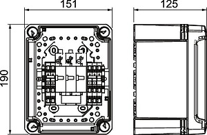 • 1 Schutzgerät mit 5 Push-In-Klemmstellen bis 6 mm² im Gehäuse vorinstalliert, bis 41 A DC pro Klemme