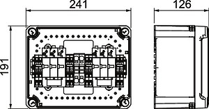 • 2 Schutzgeräte mit je 5 Push-In-Klemmstellen bis 6 mm² im Gehäuse vorinstalliert, bis 41 A DC pro Klemme