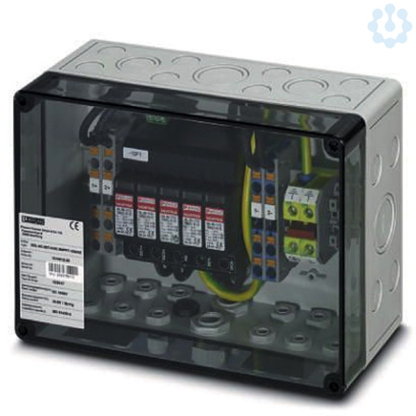 Generatoranschlusskasten für Photovoltaikanlagen bis 1000 V DC zum Anschluss von 2x 2 Strings. Mit Überspannungsschutz (Typ 1/2) und Kabelverschraubungen für die Eingangs- und Ausgangsseite.