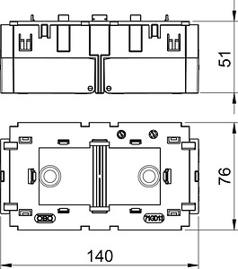 Frontrastende 2-fach Geräteeinbaudose für Modul 45®-System, mit abklappbarem und bei Bedarf auch entfernbarem Unterteil zum zeitsparenden Leitungsanschluss, mit Zuführungsöffnungen für Leitungsdurchmesser bis 14 mm.