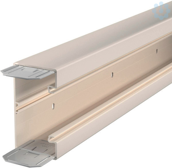 GK Geräteeinbaukanal aus bleifreiem Polyvinylchlorid, geeignet zur Montage direkt auf der Wand oder an Wandkonsolen. Die Befestigung erfolgt über die Regellochung im Kanal. Der GK Geräteeinbaukanal verfügt über ein C-Profil am Boden zur Aufnahme einer Trennwand aus Kunststoff. In den Geräteeinbaudosen der Serie 71GD... können alle Schalterprogramme in Tragring- und Tragbügelbauweise sowie Modul 45-Installationsgeräte installiert werden. Die Systemöffnung beträgt 76,5 mm. Je Kanallänge ist einseitig ein Kupplungspaar vormontiert. Das Oberteil muss separat bestellt werden.