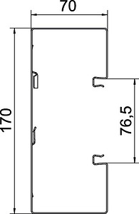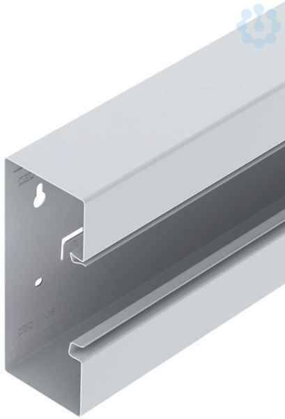 GS Geräteeinbaukanal zur Montage auf der Wand oder an Befestigungskonsolen. Der GS Geräteeinbaukanal verfügt über selbstkontaktierende Rastlaschen zur Aufnahme einer Trennwand aus Stahlblech. Der Potentialausgleich zwischen den Kanalunterteilen erfolgt über die Kupplung. Zwischen Oberteil und Unterteil wird die Schutzmaßnahme und der Potentialausgleich durch die patentierte, selbstkontaktierende Kanalabdeckung gewährleistet. Die Systemöffnung beträgt real 76,5 mm. Das Oberteil muss separat bestellt werden.