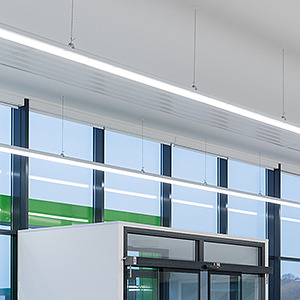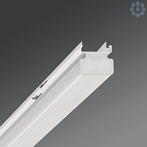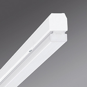 Geräteträger, aus verzinktem, profiliertem Stahlblech Oberfläche mit Polyesterharz beschichtet. Werkzeuglose Befestigung mit integrierten seitlichen Hebelverschlüssen für das schnelle Einsetzen in die Tragschiene. LED-Einheit in Gehäuselänge für ein optisch durchlaufendes Lichtband. Lichtverteilung direkt/indirekt strahlend, opaler Diffusor aus Kunststoff PMMA mit innenliegenden Längsprismen, erzeugt ein gleichmäßiges homogenes Erscheinungsbild mit Deckenaufhellung. Wärmebeständige Leitungen einschließlich festpositioniertem 5-poligen Schnellmontage-Steckerteil mit werkzeugloser Phasenvorwahl und Suchfinger.