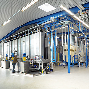 Geräteträger-Einsatz aus verzinktem, profiliertem Stahlblech, Oberfläche mit Polyesterharzlack beschichtet, mit zwei verschraubbaren Drehverschlüssen für das schnelle und sichere Einsetzen in die Tragschiene, zur Gewährleistung der Schutzart mit umlaufender geschlossener Dichtung zur Tragschiene hin abgedichtet. In einer Einheit mit dem Stahlblech-Reflektor mit einer klaren, stabilen Acrylglas Abdeckscheibe im Aluminium-Rahmenprofil mit integrierter PU-Schaumdichtung, beidseitig abklappbar und selbstrastend. Lichtverteilung direkt breitstrahlend mittels Reflektor mit innenliegenden Spiegelreflektoren aus hochglanzeloxiertem Aluminium und klarer Abdeckscheibe. Mit Notlicht Batterie 3h. Wechselrichter, Batterien und Leuchtdiode als Funktionskontrolle, Dreistündiger Notlichtbetrieb mit einer Lampe bei einem reduzierten Lampenlichtstrom. Wärmebeständige Leitungen einschließlich festpositioniertem 4-poligen Schnellmontage-Steckerteil mit werkzeugloser Phasenvorwahl und Suchfinger, über zusätzlichen Pol am Steckerteil kann ein Leiter der Durchgangsverdrahtung als ungeschaltete Ladephase genutzt werden,