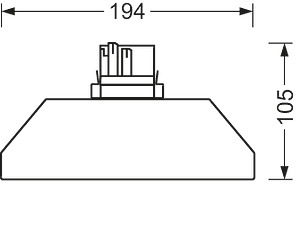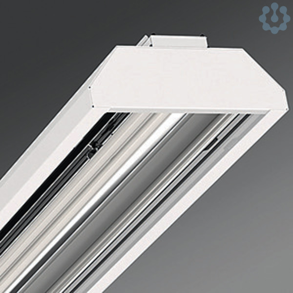 Geräteträger-Einsatz aus verzinktem, profiliertem Stahlblech, Oberfläche mit Polyesterharzlack beschichtet, mit zwei verschraubbaren Drehverschlüssen für das schnelle und sichere Einsetzen in die Tragschiene, zur Gewährleistung der Schutzart mit umlaufender geschlossener Dichtung zur Tragschiene hin abgedichtet. In einer Einheit mit dem Stahlblech-Reflektor mit einer Abdeckscheibe aus Einscheiben-Sicherheitsglas (ESG) im Aluminium-Rahmenprofil mit integrierter PU-Schaumdichtung, beidseitig abklappbar und selbstrastend. Lichtverteilung direkt breitstrahlend mittels Reflektor mit innenliegenden Spiegelreflektoren aus hochglanzeloxiertem Aluminium und klarer Abdeckscheibe. Wärmebeständige Leitungen einschließlich festpositioniertem 3-poligen Schnellmontage-Steckerteil mit werkzeugloser Phasenvorwahl und Suchfinger.