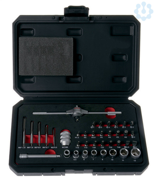 Gewinde-Bit-Set, 38tlg. M3-M8 mit T-Griff-Knarre und Stecknüssen