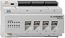 Gigabit-Switch, REG-Montage, 4 x RJ45-Frontports 10/100/1000 Mbit/s, 6 x Installationsports 10/100/1000 Mbit/s, multicastfähig, VLAN-Tagging, lichtgrau (ähnlich RAL 7035); - Übertragungsrate 10/100/1000 Mbit/s; - für DIN-Schienenmontage (8TE, ca. 144 mm); - Isolationsklasse II; - Schutzart IP 20; - Layer 2 - Switch; - für 10 Datenendgeräte; - 4 x RJ45-Frontports (Schrägauslass); - 6 Ports für Festanschluss (Schraub-/Steckklemme, 9-polig); - abziehbare 230V-Steckklemme bis 2,5mm2; - Nennbetriebsspannung: 100-240 V~/50-60 Hz; - Leistungsaufnahme: 10 VA max.; - Temperaturbereich: -40°C - 45°C; - LED`s für Betriebsfunktionen; - kaskadierbar über beliebigen Frontport; - Autopartitioning, MDI/MDIx; - Autonegotiation; - Autosensing; - multicastfähig