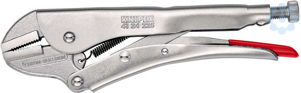 41 24 225 Gripzange Halten Rund-, Profil- und Flachmaterial sicher fest. Hoch belastbar. Mit Stellschraube und Lösehebel. Einhandbedienung. Hoher Spanndruck durch Kniehebelübersetzung. - Spannkapazität rund: 25mm - Spannkapazität 4-kant: 16mm - Spannkapazität 6-kant: 30mm