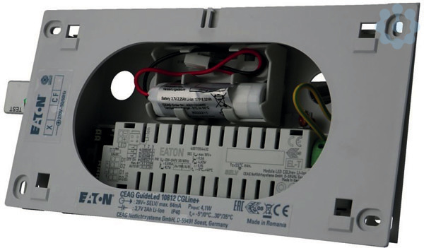 Montagesatz für Einzelbatterieleuchte GuideLed CGLine+ für den autarken Betrieb oder zum Anschluss an zentrale Überwachungseinrichtung CGLine+. Automatischer Funktionstest (wöchentlich) sowie automatischer Betriebsdauertest (alle 3 Monate), Notlichtbetriebsdauer frei wählbar: 1 h, 3 h oder 8 h, Lightguide-Technik mit 3-Chip-LEDs für hohe, gleichmäßige Leuchtdichte gem. DIN 4844-1, hohe Lebensdauer 50.000 h, 1 Minute Rückschaltverzögerung nach Netzwiederkehr. Blockierfunktion über zentrale Überwachungseinrichtung für Betriebsruhezeiten. Zulässiger Temperaturbereich: Dauerlicht -5°C bis +30°C / Bereitschaftslicht 0°C bis + 35°C. Die Piktogrammscheibe inklusive LEDs ist im Lieferumfang nicht enthalten und separat zu bestellen. Montageart: Aufbau/Einbau Leuchtmittel: LED Werkstoff des Gehäuses: Kunststoff Gehäusefarbe: grau Art der Kennzeichnung: nur einseitig Geeignet für Kennzeichnungsart: Acrylglasplatte Überwachungseinrichtung: automatischer Selbsttest Ballwurfsicher: Nein Schaltungsart: Dauerschaltung/Bereitschaftsschaltung Mit Fernschalteranschluss (VDE 0100-718, VDE 0108-100): Ja Einspeisung: dezentral (Einzelbatterie) Nennspannung: 220 - 240 V Schutzklasse: I Schutzart (IP): IP20 Nennbetriebsdauer: 8 h Mit Leuchtmittel: Nein Einbaulänge: 185 mm Einbaubreite: 88 mm Einbautiefe: 42 mm Lichtstrom bei Notbetrieb: 25 % Erkennungsweite: 20 m