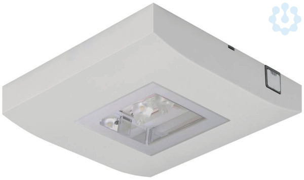 Sicherheitsleuchte mit symmetrischer Optik für Flächenausleuchtung. Einzelbatterieleuchte für den autarken Betrieb oder zum Anschluss an zentrale Überwachungseinrichtung CGLine+. Automatischer Funktionstest (wöchentlich) sowie automatischer Betriebsdauertest (alle 3 Monate), Notlichtbetriebsdauer frei wählbar: 1 h, 3 h oder 8 h, Doppellinsentechnik mit hocheffizienten HighPower LEDs, hohe Lebensdauer 50.000 h, 1 Minute Rückschaltverzögerung nach Netzwiederkehr. Blockierfunktion über zentrale Überwachungseinrichtung für Betriebsruhezeiten. Zulässiger Temperaturbereich: Dauerlicht -5°C bis +30°C / Bereitschaftslicht 0°C bis + 35°C. Montageart: Deckenanbau Leuchtmittel: LED Werkstoff des Gehäuses: Kunststoff Gehäusefarbe: weiß Überwachungseinrichtung: automatischer Selbsttest Ballwurfsicher: Nein Schaltungsart: Dauerschaltung/Bereitschaftsschaltung Mit Fernschalteranschluss (VDE 0100-718, VDE 0108-100): Ja Einspeisung: dezentral (Einzelbatterie) Nennspannung: 220 - 240 V Schutzklasse: II Schutzart (IP): IP40 Nennbetriebsdauer: 8 h Mit Leuchtmittel: Ja Länge: 195 mm Breite: 195 mm Höhe/Tiefe: 38 mm Lichtstrom bei Notbetrieb: 25 %