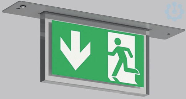 Leuchte zur Rettungswegkennzeichnung. Einbaugehäuse Stahlblech. Deckenplatte Edelstahl glänzend oder pulverbeschichtet. Displayscheibe Kunststoff hochtransparent mit Rettungszeichen einseitig/zweiseitig. Betriebsgeräte integriert. Einzelbatteriesystem mit automatischem Selbsttest. Symbolnummer für Rettungszeichen bei Bestellung angeben!