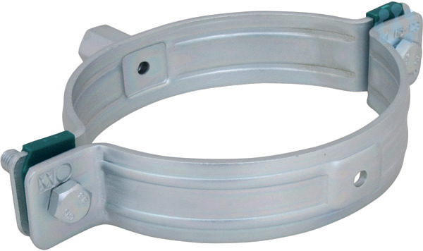 Schwerlastschelle HD500 (M8/10, M10/12) (BUP1000) befestigt als zweiteilige Stahlschelle Stahlrohre mit zwei gegen Verlust gesicherten Verschlussschrauben und CO2-geschweißter Anschlussmutter, ergänzbar durch eine Schallschutzeinlage, für Rohre D 66-71 mm.