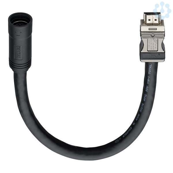 HDMI-Adapterkabel (Stecker), 0,3 m, schwarz für AK ES HDMI, - mit Rundsteckverbinder (Ï 17 mm) für AK ES HDMI und HDMI-Stecker, - PVC Mantelmaterial, schwarz (flammwidrig), - Kabeldurchmesser Ï 12 mm, - HDMI-High Speed-Standard (3D/4K-fähig)