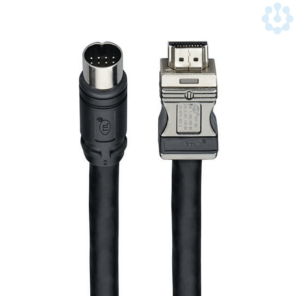 HDMI-Endgeräte-Anschlusskabel (Stecker/Rundsteckverbinder), 4,7 m, schwarz als Einzugkabel, - Brandverhalten: V0, - hochflexibel, - mit Rundsteckverbinder für Einzughilfe EZH und Kabeladapter EKM HDMI-S/B 0,3 m, - PVC Mantelmaterial, schwarz, - Kabeldurchmessser Ï 12 mm, - HDMI-Standard (3D/4K-fähig)