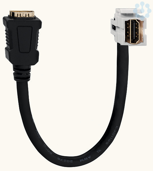 HDMI-Keystone (Buchse/Buchse), für Montageadapter KMK-MA Up und andere Keystone-Aufnahmen, mit Kabelpeitsche (20 cm), reinweiß (ähnlich RAL 9010); - passend in Standard-Keystone-Öffnungen (14,7 x 19,3 mm); - 2 x HDMI (Buchse/Buchse); - Kabelpeitsche 20 cm; - HDMI-Standard: 2.0 (4K@60Hz)