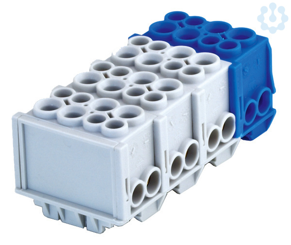 Die Hauptleitungsabzweigklemme ist fingersicher und komplett geschlossen. Dank einer Universal-Schnellbefestigung kann die Klemme waagrecht und senkrecht auf DIN-Tragschienen montiert werden. Der Isolierkörper ist aus hochkriechstromfestem Polyamid und hat die Schutzklasse IP20. Die HLAKs sind nach DIN VDE 0603-2 gefertigt und sind für eine maximale Spannung von 400 V nach IEC einsetzbar. ein-/mehrdrähtig: á 2 x 4 - 35 mm² und á 2 x 2,5 - 25 mm² mit Aderendhülse: á 2 x 4 - 25 mm² und á 2 x 2,5 - 16 mm² I: 100A U: 400V (IEC) max. Drehmoment: 3 Nm Material: Messing blank
