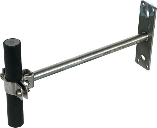 Leitungshalter für die Verlegung der HVI Leitung in explosionsgefährdeten Bereichen der Ex-Zone 1 (Gase, Dämpfe, Nebel) sowie Ex-Zone 21 (Stäube). Die besonderen Installationsbedingungen stellen sicher, dass ein elektrischer Funke zu benachbarten metallenen Teilen beim Blitzstromdurchgang durch die HVI Leitung verhindert wird. Ausführung mit Distanzhülse Abstand 200 mm, zur Befestigung auf metallenen Konstruktionsteilen (z. B. Fassaden).