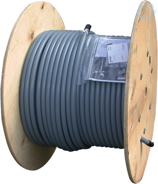 HVI light Leitung (Hochspannungsfeste isolierte Ableitung), zum Einhalten des Trennungsabstandes zu elektrisch leitenden Teilen nach DIN EN 62305-3 (VDE 0185-305-3), um gefährliche Überschläge zwischen Teilen des Äußeren Blitzschutzes und inneren, leitfähigen Teilen (Elektroanlage, Rohrleitungen, usw.) zu verhindern. Um Gleitentladungen zu vermeiden, ist die HVI Leitung mit einem äußeren Spezialmantel ausgestattet, der es ermöglicht, hohe Blitz-Impulsspannungen gegen ein Bezugspotential ab zusteuern. Die HVI light Leitung ermöglicht auch Installationen, ohne dass am Ende eines Anpassungsbereiches eine Verbindung zum Potentialausgleich der baulichen Anlage hergestellt wird. Ausführung für die Konfektionierung vor Ort (Länge 100 m - grau). Äquivalenter Trennungsabstand s ≤ 45 cm (in Luft), s ≤ 90 cm (fester Baustoff).