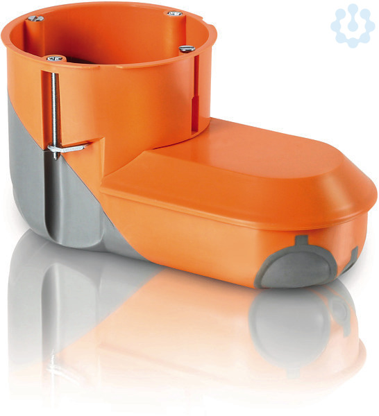 Hohlwand-Elektronikdose; orange; mit Durchstoßmembran; 70% Zeitersparnis bei der Montage; Ein-Lochmontage; Seitlicher Anschlussraum für alle gängigen Relais und Aktoren; Einhaltung des Biegeradius bei Netzwerkkabeln problemlos möglich; Material: PP, TPE, recycelbar