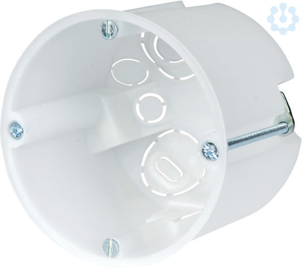 HW Gerätedose, halogenfrei, Ø68mm, t=61mm, vormontierten Geräteschrauben, Ausbrechöffnungen für Leitungen und Rohre, Material: PP, recycelbar, Farbe: Weiß