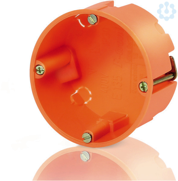 Hohlwand-Gerätedose ohne VDE; Tiefe 35 mm; Mit vormontierten Geräteschrauben; Mit Ausbrechöffnungen für Leitungen; Fräsloch D=68 mm; orange; Material: PP, recycelbar