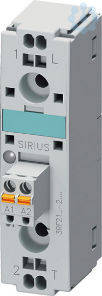 Halbleiterrelais, 1-phasig 3RF2 Baubreite 22,5 mm, 20 A 24-230 V / DC 4-30 V Federzuganschluss Halbleiterrelais SIRIUS 3RF21 zum Schalten von ohmschen/induktiven Lasten, z. B. von Heizkörpern oder Ventilen in einer Abfüllanlage.Die Geräte schalten verschleißfrei und lautlos und sind daher ideal für geräuschsensible Bereiche (Büros, Krankenhäuser). Sie sind auch bei hohen Schaltfrequenzen äußerst zuverlässig. Die kompakte Bauweise spart Platz auf der Kühlfläche. Die Halbleiterrelais lassen sich zudem durch die standardisierten Funktionsmodule 3RF29 für vielfältige Anwendungen durch einfaches Aufklicken erweitern. Die Geräte sind weltweit zugelassen (z.B. IEC und UL/CSA).Die Halbleiterrelais sind als 1-phasige Geräte in zwei Baubreiten oder als 3-phasige Geräte verfügbar. Sie sind für verschiedene Leistungen und Bemessungsbetriebsspannungen erhältlich. Ausgelegt für AC- oder DC-Betätigung stehen sie mit Schraub-, Federzug- oder Ringkabelschuhanschluss zur Verfügung.Als Zubehör stehen neben den Funktionsmodulen 3RF29 auch Steuerstecker und Klemmenabdeckungen zur Verfügung.Einfach, effizient, immer aktuell - der SIRIUS Systembaukasten.