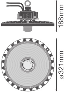 . Produktvorteile: Mehrfache Einstellmöglichkeiten von Sensorbereich, Tageslichterkennung und Haltezeit. Hohe Lichtausbeute. Bis zu 64 % Energieersparnis verglichen mit konventionellen Hallenspiegelleuchten. 5 Jahre Garantie. Geeignet für Verwendung in staubigen und feuchten Umgebungen dank hoher Schutzart. Anwendungsgebiete: Ersatz für Hallenspiegelleuchten mit Quecksilberdampf- oder Halogen-Metalldampflampen. Lagerhäuser. Logistikhallen. Industrie. Hohe Decken (z.B. in Einkaufszentren, Flughäfen, Geschäftsgebäuden, Lobbies). Technische Ausstattung: Sensor, Montagering und Montagebügel enthalten. Reflektoren, Refraktoren und Fernbedienung als separates Zubehör erhältlich.