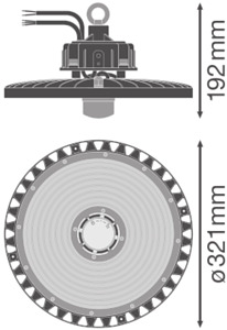 . Produktvorteile: Mehrfache Einstellmöglichkeiten von Sensorbereich, Tageslichterkennung und Haltezeit. Hohe Lichtausbeute. Bis zu 64 % Energieersparnis verglichen mit konventionellen Hallenspiegelleuchten. 5 Jahre Garantie. Geeignet für Verwendung in staubigen und feuchten Umgebungen dank hoher Schutzart. Anwendungsgebiete: Ersatz für Hallenspiegelleuchten mit Quecksilberdampf- oder Halogen-Metalldampflampen. Lagerhäuser. Logistikhallen. Industrie. Hohe Decken (z.B. in Einkaufszentren, Flughäfen, Geschäftsgebäuden, Lobbies). Technische Ausstattung: Sensor, Montagering und Montagebügel enthalten. Reflektoren, Refraktoren und Fernbedienung als separates Zubehör erhältlich.