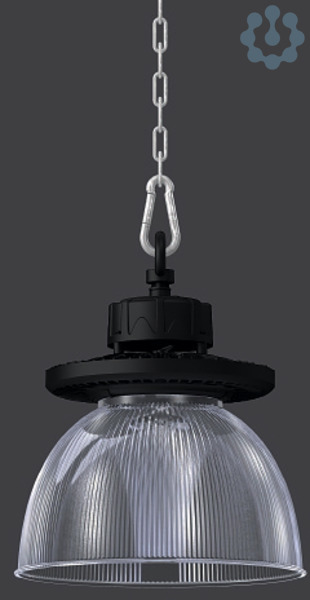 Runder Hallenstrahler für Ketten- oder Seilabhängung. Gehäuse Aluminium-Druckguss mit Ringöse, pulverlackiert. Diffusor aus entspiegeltem Einscheiben-Sicherheitsglas (ESG) klar. Refraktor Kunststoff (PMMA) klar. Primäre Lichtlenkung mit Hochleistungs-Flächen-LED. Einfache Installation durch Ein-Punkt-Aufhängung. Pendelabhängung über Kette oder Stahlseil bauseits. Leuchten mit begrenzter Oberflächentemperatur nach DIN EN 60598-2-24 zur Verwendung in einer Umgebung, in der eine Ablagerung von leitfähigem Staub auf der Leuchte erwartet werden kann. Zugelassen für den Einsatz in der Lebensmittel- und Getränkeindustrie.
