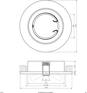 Schwenkbare Deckeneinbauleuchte für vielfältige Anwendungen im Innenbereich. Abhängig von der verwendeten Fassung lassen sich verschiedene Leuchtmittel für die Unterschiedlichsten Beleuchtungsanforderungen in die Leuchte einsetzen, ganz egal ob Halogen oder LED, wodurch der Gestaltungsmöglichkeit nahezu keine Grenzen gesetzt sind. Der Schwenkwinkel der Leuchte beträgt 25°.