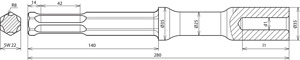 Hammereinsatz zum Eintreiben von Tiefenerdern mit Vibrationshämmern. Ausführung mit TE-S (SW 22 x 140 mm) Aufnahme.