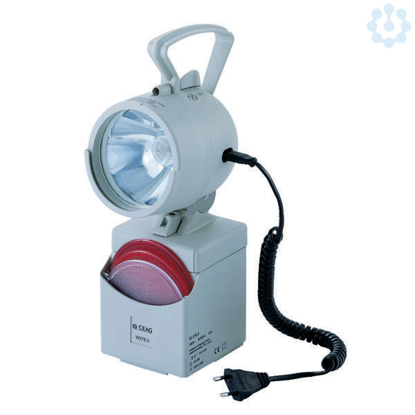 Handscheinwerfer mit Notlichtfunktion und eingebautem Ladegerät. Inkl. Überwachung des Ladekreises und Funktionsanzeige durch grüne LED. Gehäuse aus schlagzähem, abriebfestem Kunststoff. Inklusive Vorsteckscheibensatz: rot, orange, klar prismiert. Notlichtdauer: 3,5 h mit Glühlampe 5V/5W (Hauptlicht) / 12,0 h mit Glühlampe 4,8V/1,5W (Nebenlicht). Schaltfunktionen: Blinklicht, Dauerlicht und Nebenlicht. Beleuchtungsstärke: 5 m 256 Lux, 20m 16 Lux, 80m 1 Lux. Anschlussleitung: Spiralkabel mit Euro-Stecker.