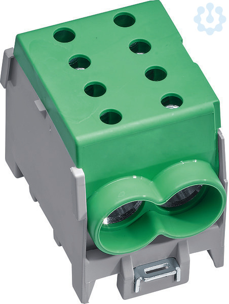 Hauptleitungsabzweigklemme 1polig, 4x70mm², IP20, Farbe: Grün. Fingersichere Hauptleitungsabzweigklemme zur Montage auf Hutschiene.