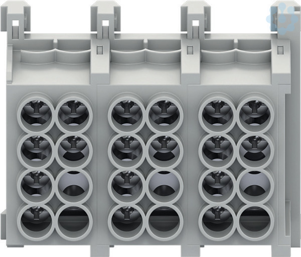 Hauptleitungsklemme 3-polig, 2x 25qmm und 2x 16qmm je Pol (4 Klemmstellen), Nennstrom 80A, Schutzklasse IP20, fingersicher, zur Montage auf Hutschienen
