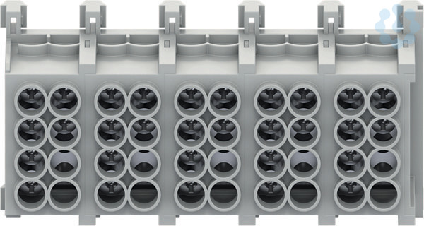 Hauptleitungsklemme 5-polig, 2x 25qmm und 2x 16qmm je Pol (4 Klemmstellen), Nennstrom 80A, Schutzklasse IP20, fingersicher, zur Montage auf Hutschienen