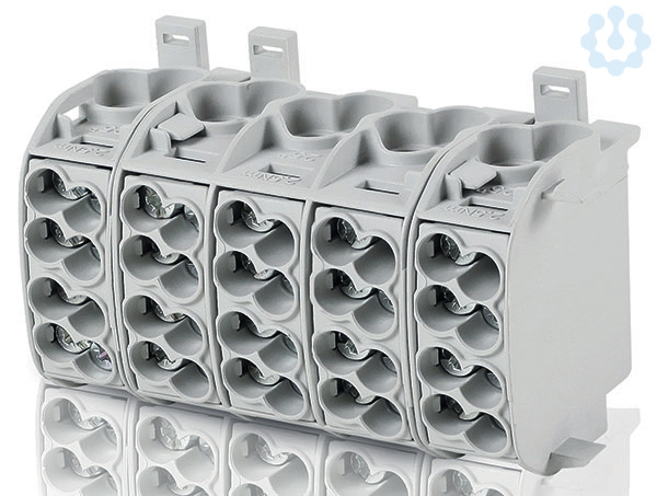Hauptleitungsabzweigklemme 25mm² (Typ C). Farbe grau. Montageart DIN-Schiene. Anzahl Pole: 4